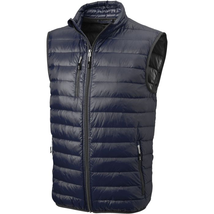 The Fairview men's lightweight down bodywarmer – perfect functionality to elevate your outdoor attire. This bodywarmer features elasticated binding on the bottom, offering a comfortable and slightly tight fit that adds protection against chilly winds. The outer shell fabric is made of nylon dull cire 20D woven with a water-repellent finish, ensuring exceptional durability and good protection against the elements. The lightweight material allows for easy movement and effortless wear throughout the day. The downproof pressed fabric prevents the down and feathers from escaping, ensuring long-lasting warmth and an extra level of durability. The down insulation is RDS certified (Responsible Down Standard), consisting of down and feathers, providing lightweight warmth without compromising ethical standards. A reliable companion for any outdoor adventure.