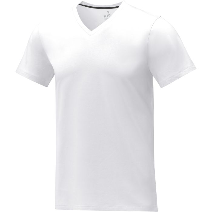 The Somoto short sleeve men's V-neck t-shirt made of 160 g/m² cotton is perfect for any occasion and a comfortable addition to any wardrobe. The ringspun cotton provides a stronger and smoother yarn, resulting in a more durable fabric that guarantees high quality branding. The V-neck design adds a touch of style and the side seams ensure a great fit. The printed in-neck Elevate branding also adds to its overall comfort, and the re-enforced shoulders ensure a continuous fit even after long-term use.